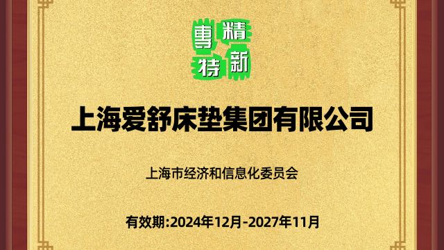【重大喜訊】愛舒榮獲上海市“專精特新”企業(yè)認(rèn)證